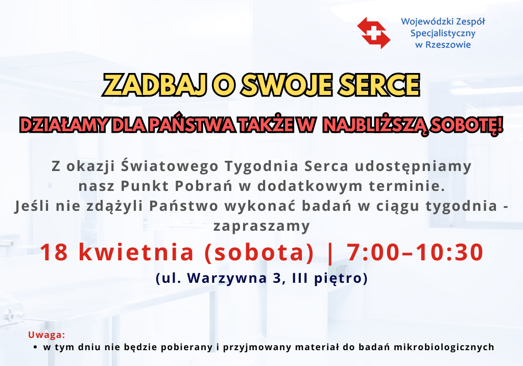 Zadbaj o swoje serce działamy dla Państwa także w najbliższą sobotę! Z okazji Światowego Tygodnia […]